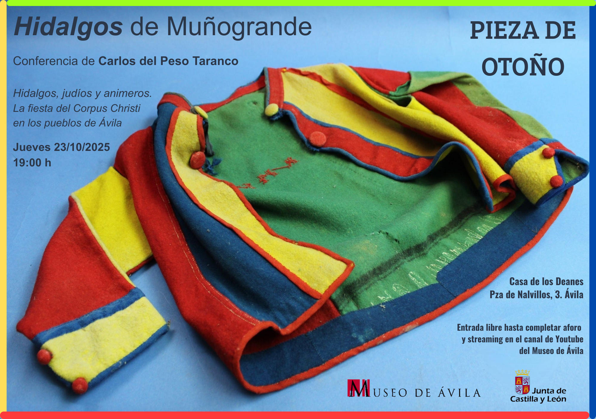 Las piezas serán presentadas con una conferencia a cargo del etnógrafo Carlos del Peso Taranco, titulada “Hidalgos, judíos y animeros. La fiesta del Corpus Christi en los pueblos de Ávila”, el día 23 de octubre, a las 19:00 h., en la Casa de los Deanes, con entrada libre hasta completar el aforo y streaming en el canal de YouTube del Museo de Ávila